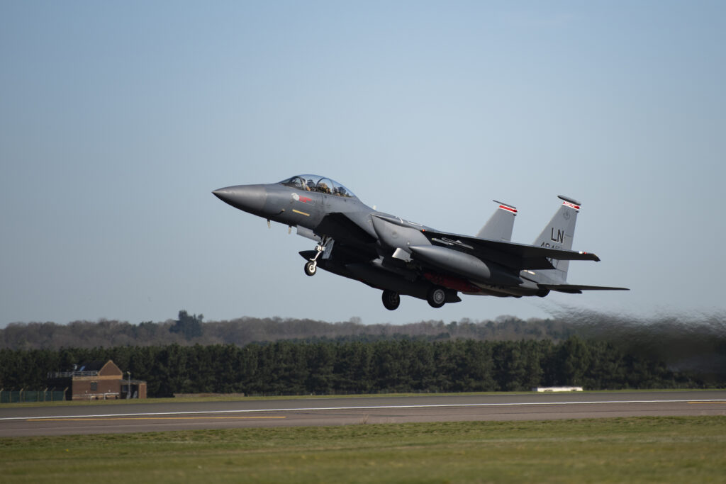 F-15Es with new electronic-warfare system make their debut in the UK