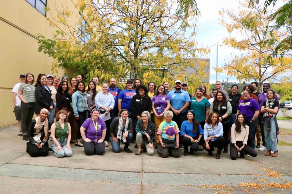 This led Hasegawa last fall to South Seattle College, the setting for MLK Labor’s community assembly on extreme weather and worker rights. One October evening, a lecture hall filled with union workers, including teachers, firefighters, home health care workers, postal workers, and more, ready to try out the Community Assembly model. Community Assemblies are participatory spaces where people come together to learn, deliberate, and make collective decisions on programs and policies that influence the actions of government and community action. Hasegawa watched closely as the assembly unfolded.
