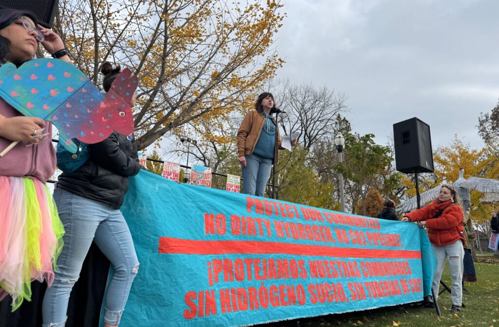 “These hubs are being built across the country in our backyards, without transparency, without our consent, and under the lie that hydrogen is a clean energy source and magic wand that will solve climate change,” said Lisa Vallee, organizing director with Just Transition Northwest Indiana, an environmental justice organization. Her group and others in Northwest Indiana have raised concerns about a hydrogen production facility that fossil fuel giant BP is considering building near its oil refinery, as part of the Midwest hub.