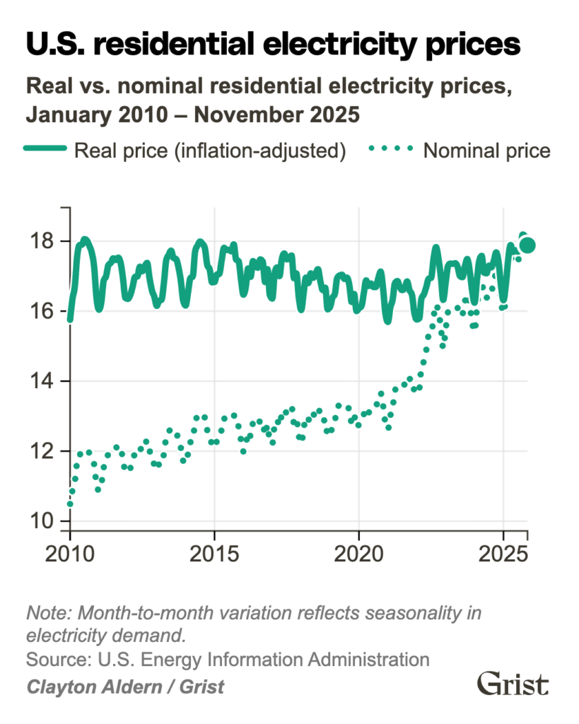 It’s no secret that U.S. electricity prices have been rising over the last few years: The average residential energy bill in 2025 was roughly 30 percent higher than in 2021. This jump is largely in line with the overall inflation Americans have experienced during this period. As the cost of groceries, gas, and housing has increased, so too has the cost of electricity.